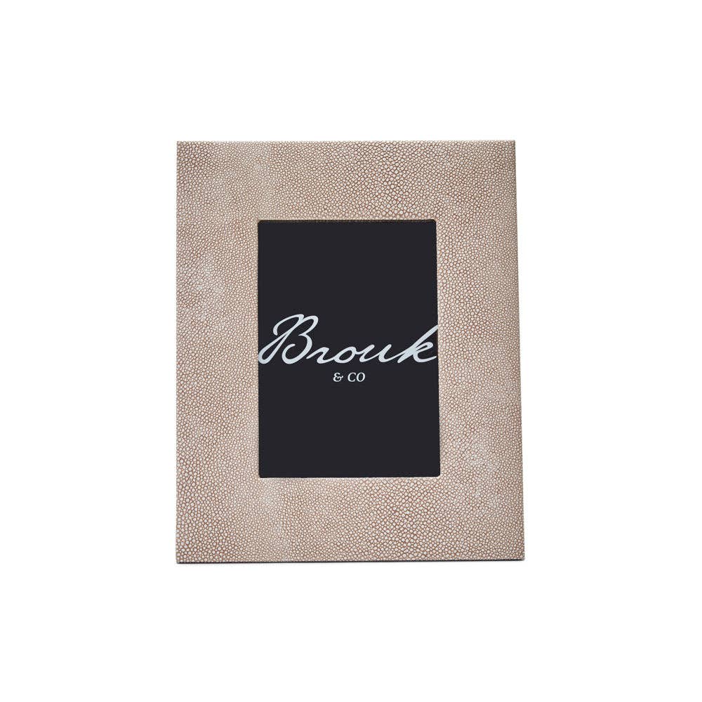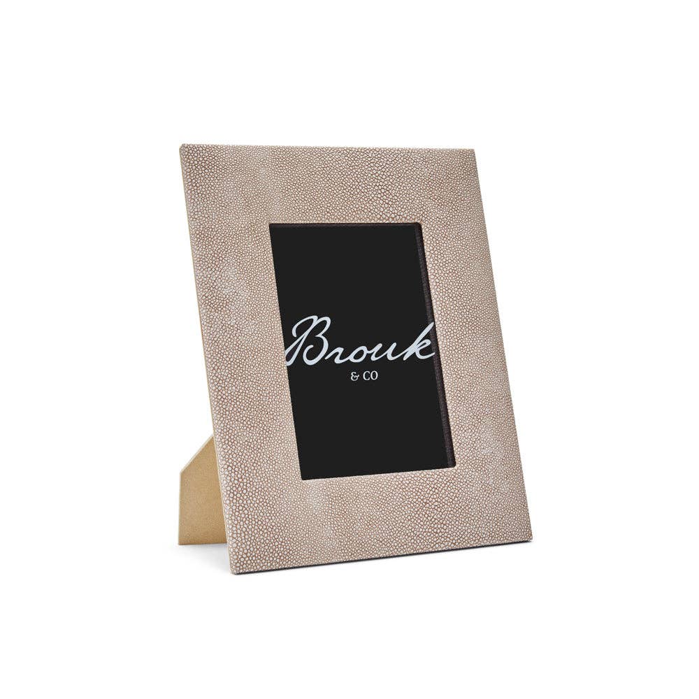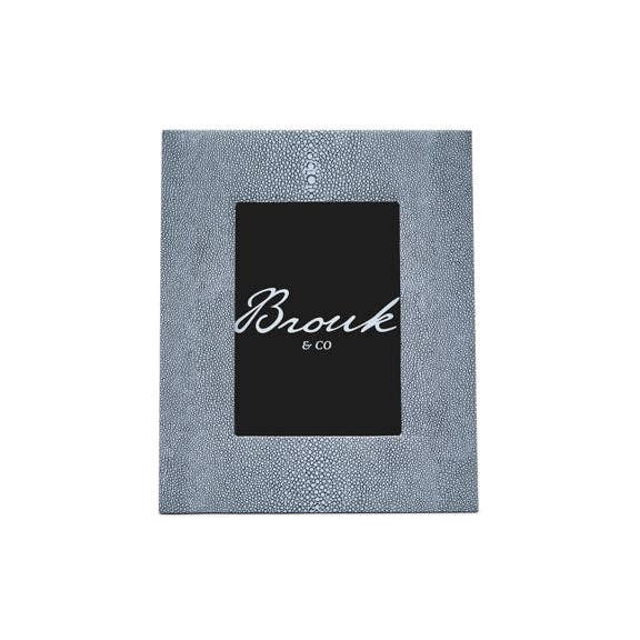 The Aiden picture frame is a beautiful way to showcase a favorite photograph or memory. The Aiden picture frame is completed in a textured shagreen print with a plush backing. May be used horizontally or vertically.