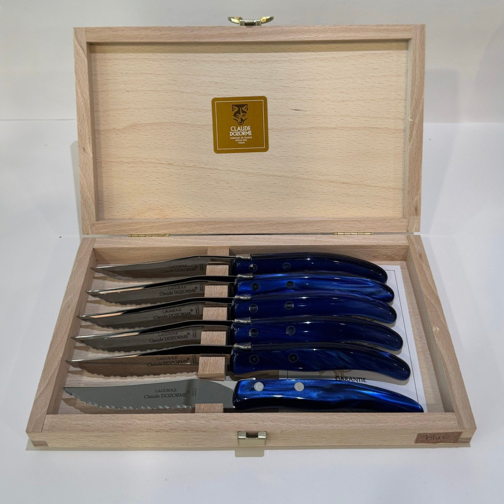 Blue Claude Dozorme Berlingot Knives, Set of 6