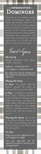 Get ready to up your game with our Professional Tournament Dominoes. These dominoes are crafted to official competition standards, measuring 2-1/8" x 1-1/8" x 7/16" and weighing .055 lbs. each. With 28 indestructible ivory-look Double-Six Dominoes featuring smoothly rounded corners and gleaming black dots, you're set for intense matches. Choose from versions with or without spinners to suit your style.