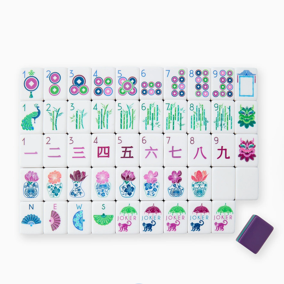 Inspired by the brilliance of precious gemstones, the Gemma Tiles bring a rich, luxurious feel to your mahjong game. With a stunning jewel-toned palette of deep purple, emerald green, and berry, this set captures the elegance and allure of amethyst, emerald, and garnet. Whether playing for fun or aiming for a winning hand, the Gemma Tiles add a touch of opulence and sophistication to every game night.