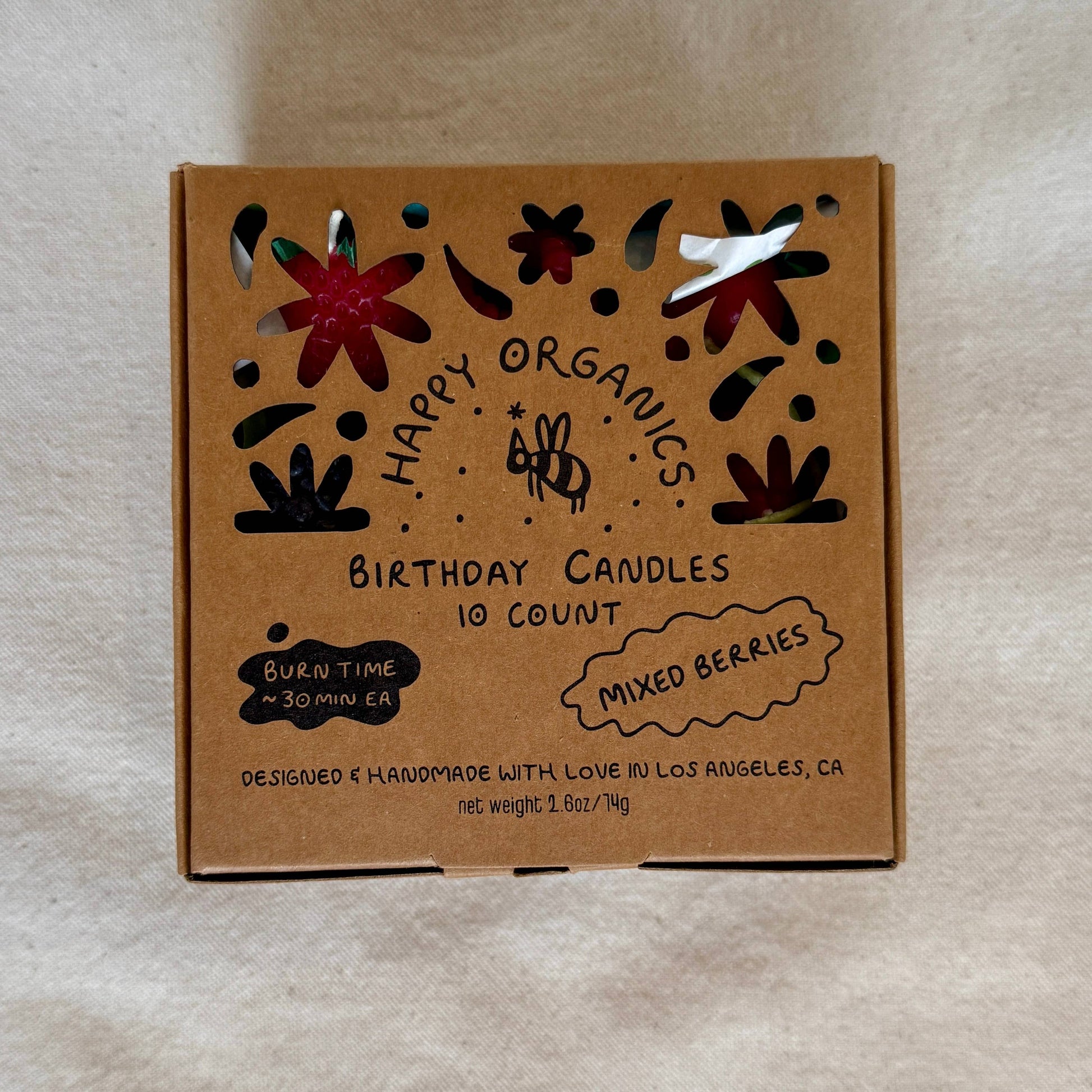 Experience the charm of our Mixed Berry Birthday Candles, meticulously crafted from pure beeswax harvested from our family-owned hives in scenic Merced, CA. As third-generation beekeepers, we've perfected the art of infusing love and heritage into each little flame. Each candle is uniquely shaped using molds cast from real berries. 10 berries per box! The packaging includes the berry basket with green crinkle cut inside the brown kraft box.