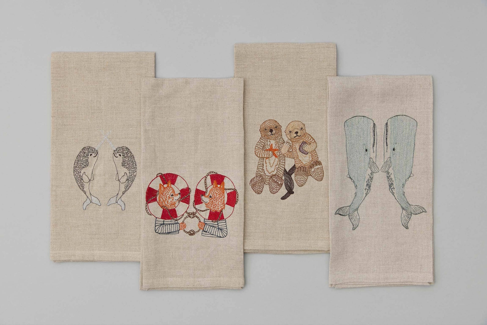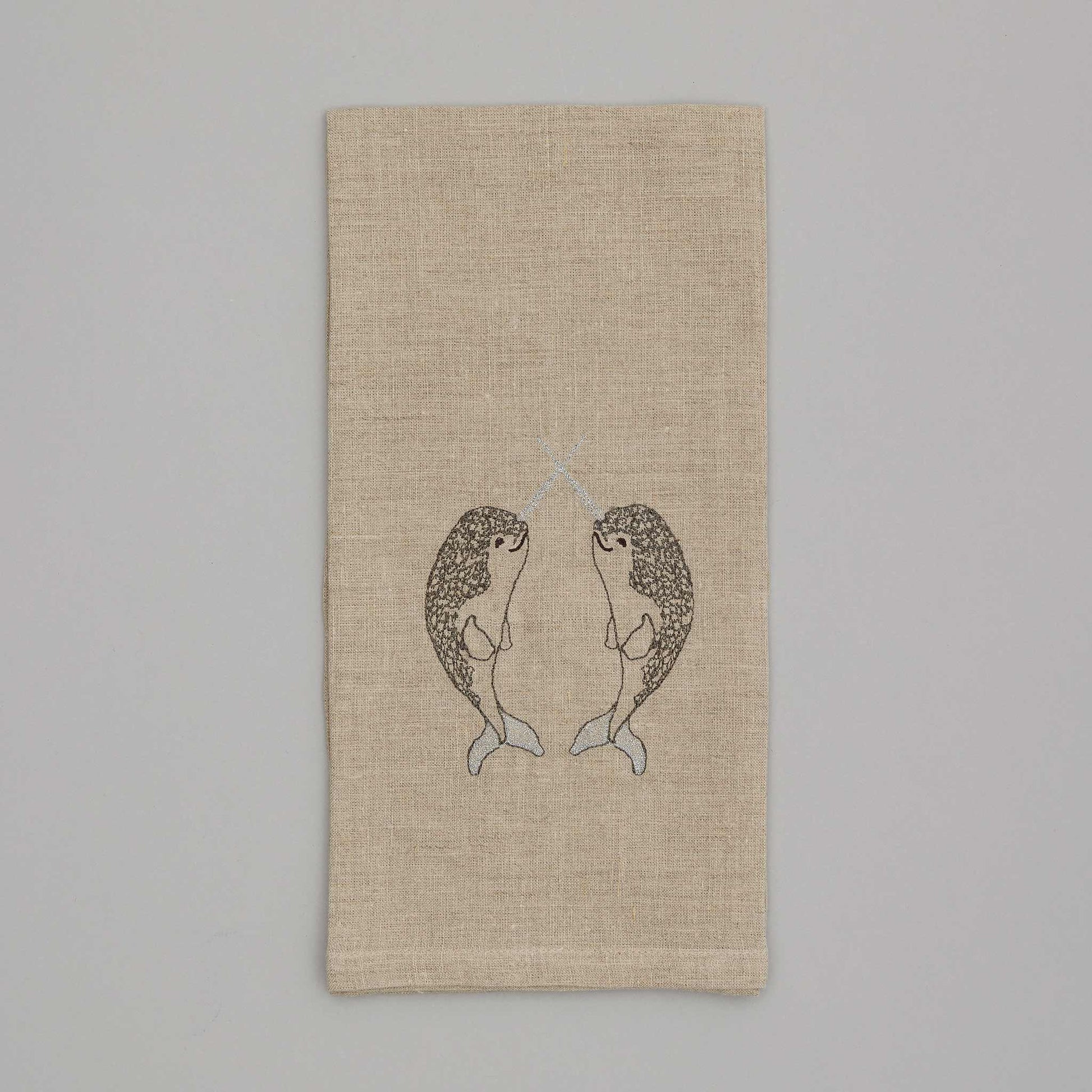 Otherwordly and enchanting, narwhals captivate the imagination! Our Narwhals tea towels features the amazing whales bringing their metallic silver tusks and fins together.