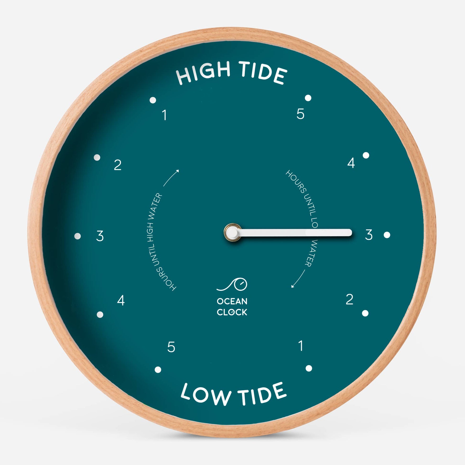 A clock allows you to see the state of the tide at a glance! It tells you whether the tide is rising or falling and how much time is left before high or low tide. A trend for several years, natural decoration continues to charm us. Create a colorful interior with our wooden tide clock and its emerald green dial! Hand-assembled in Hossegor, with a natural beech frame, a white hand, and a mineral glass dial. ❌ IMPORTANT In California and the Gulf of Mexico, tides are diurnal or mixed, making clock products inaccurate in these regions.