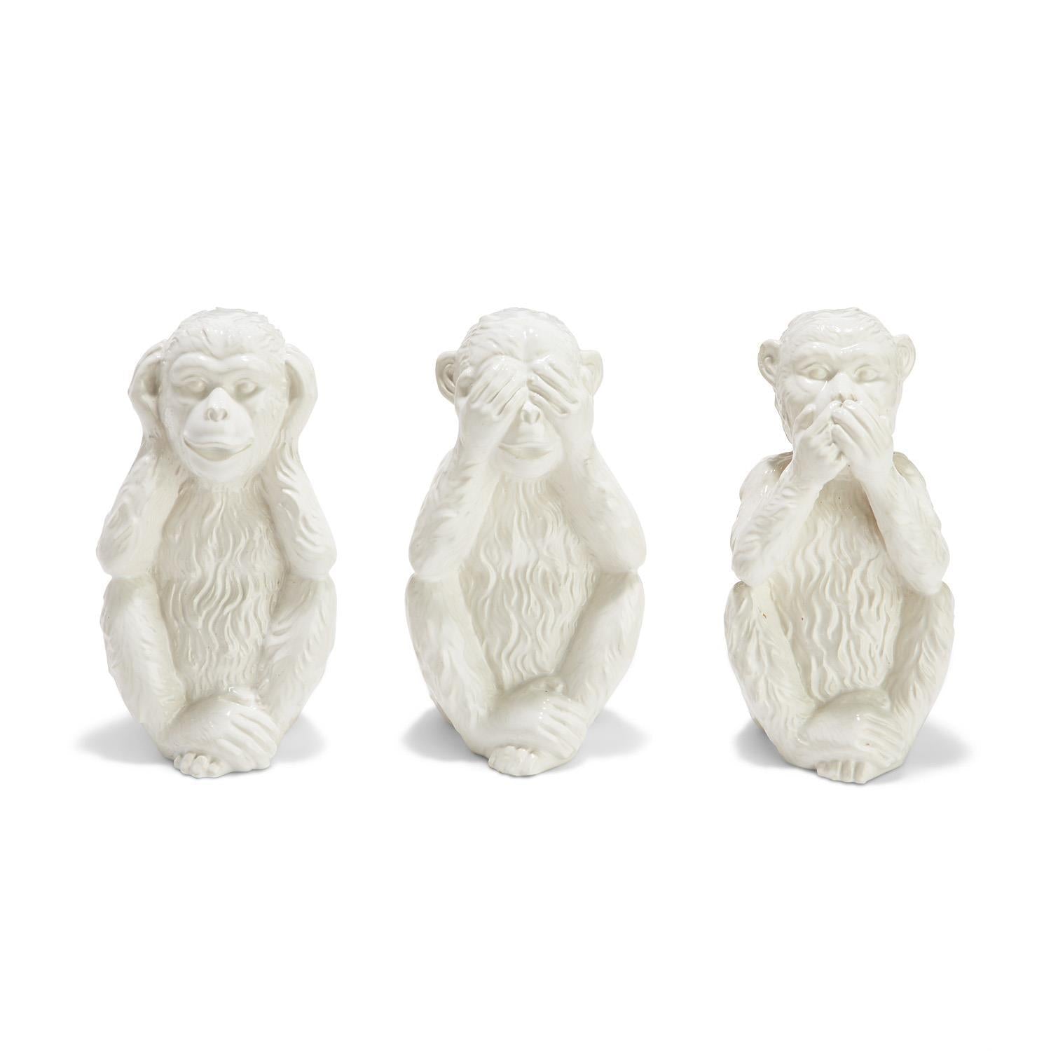 Set of 3 Hear No Evil, See No Evil, Speak No Evil Monkeys - Ceramic