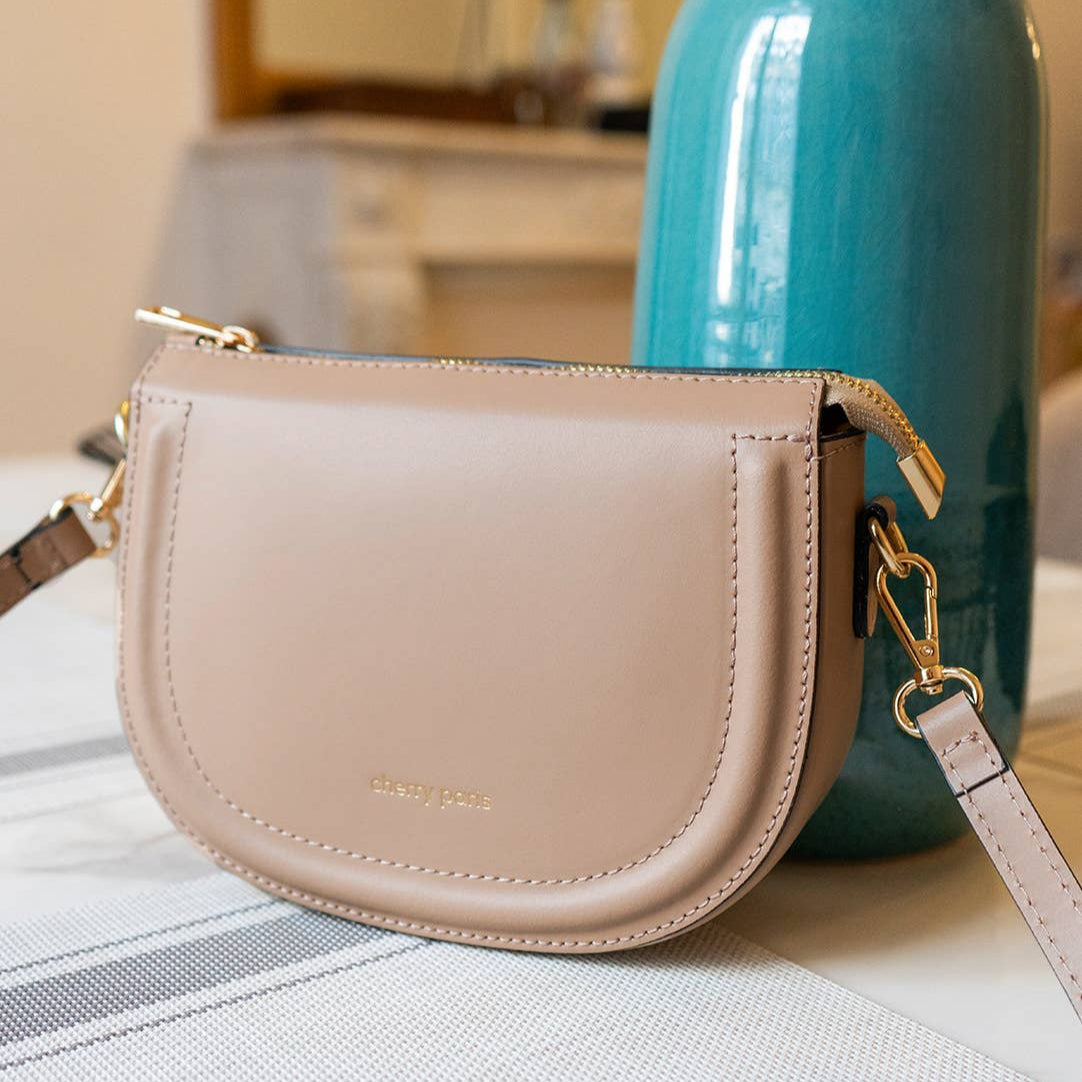 Crossbody bag in smooth split cowhide leather. Main zipper closure. Adjustable and removable shoulder strap. Interior zip pocket. Dimensions: 21x15x7cm
