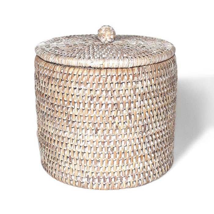 Toilet Paper Holder (Single Roll) with Lid - White Wash 6.25" x 5.75"H