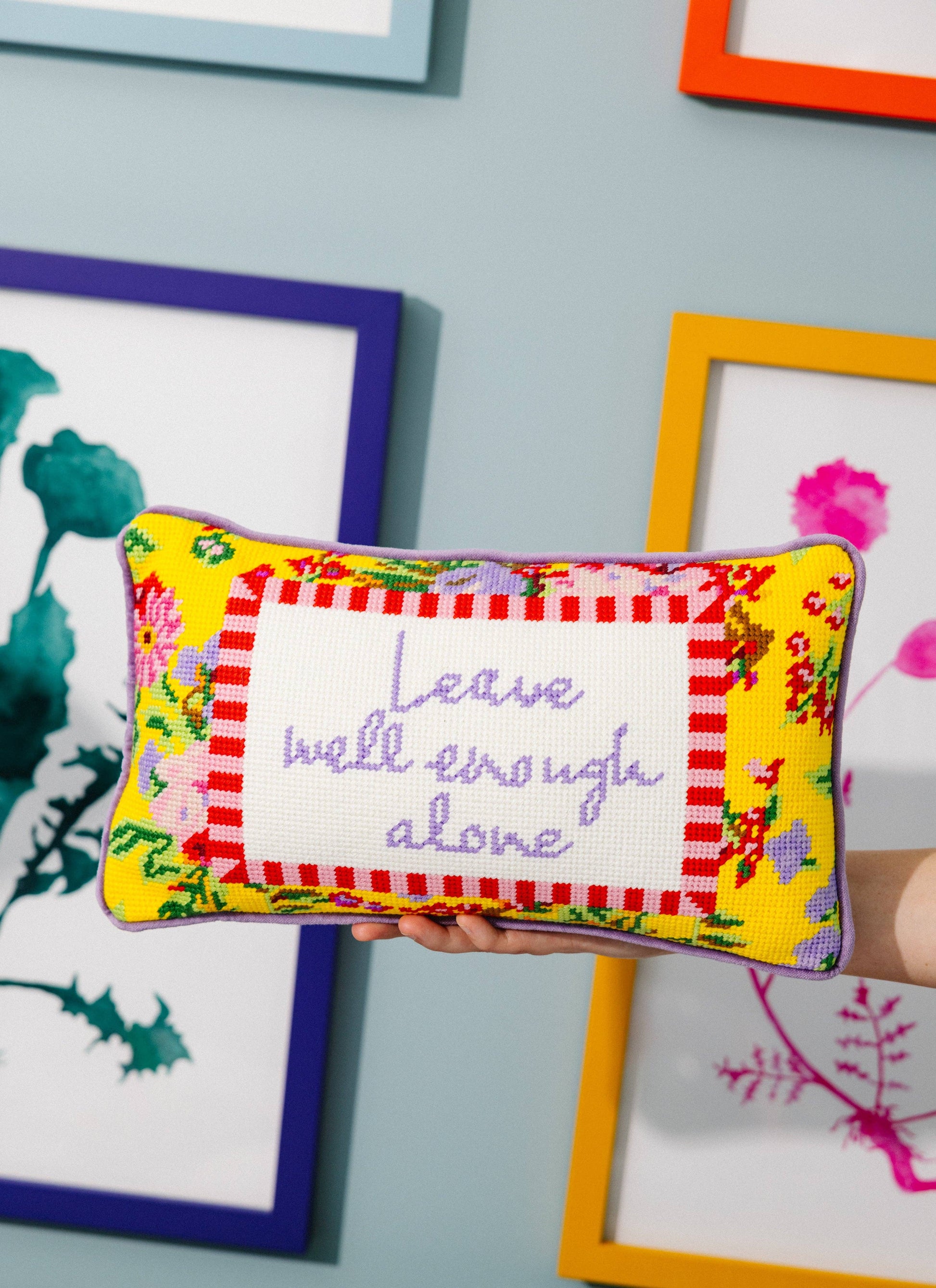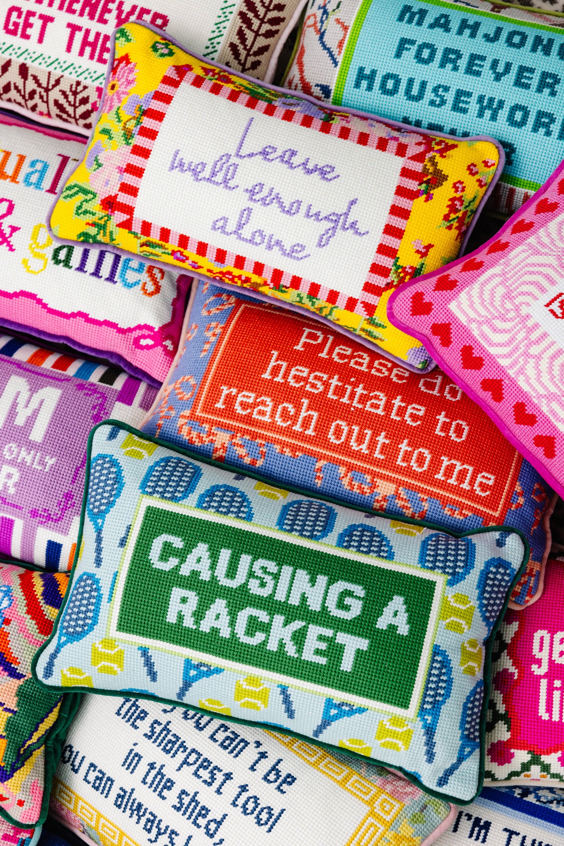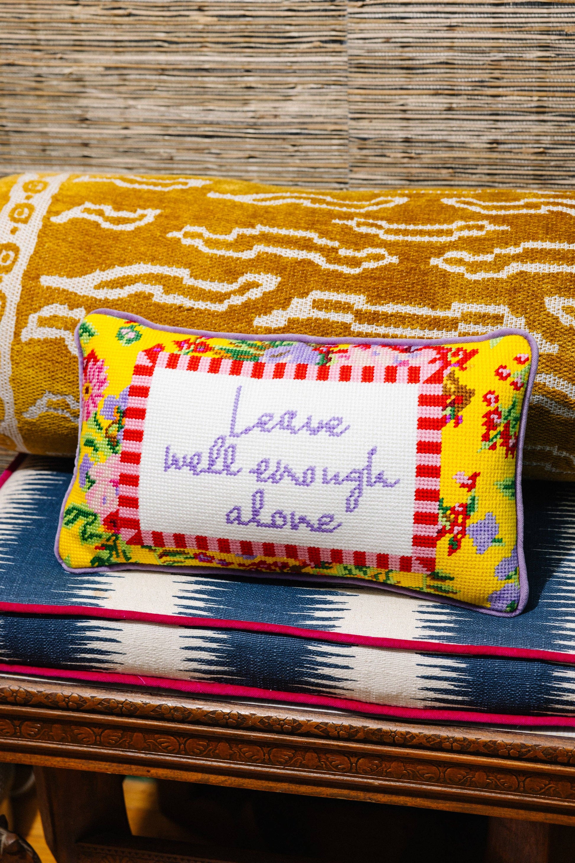 Make a statement with this charming-meets-chic needlepoint pillow. They are guaranteed to spark joy and make the perfect gift! Measures 9" x 15" - Small pillow, big statement! Dare to mix with our scalloped linen, contrast trim velvet, ruffled block print, and needlepoint pillows for an insta-worthy pillow pile.